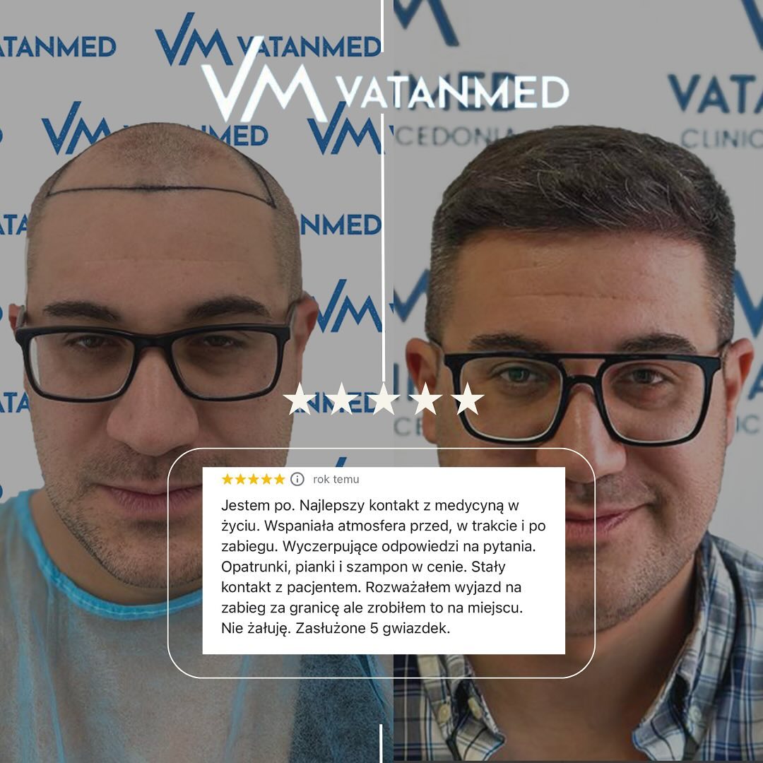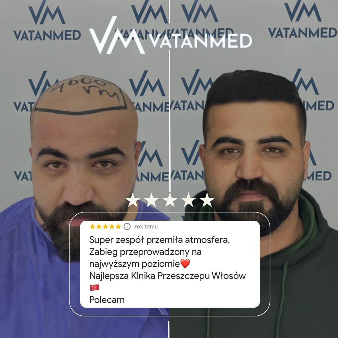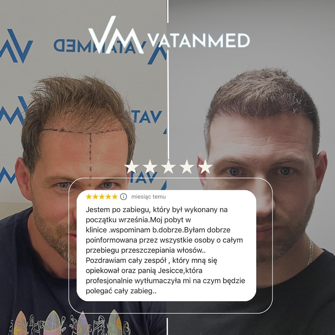 Każda opinia, którą tutaj przeczytasz, została napisana przez pacjentów, którzy wybrali Vatanmed Clinic w Polsce na swój przeszczep włosów. Od pierwszej konsultacji aż po ostateczny efekt — ich autentyczne doświadczenia teraz pomagają i inspirują innych, tak jak Ciebie.