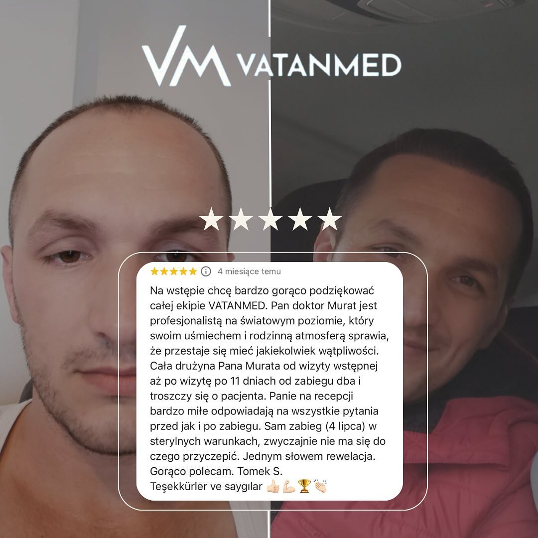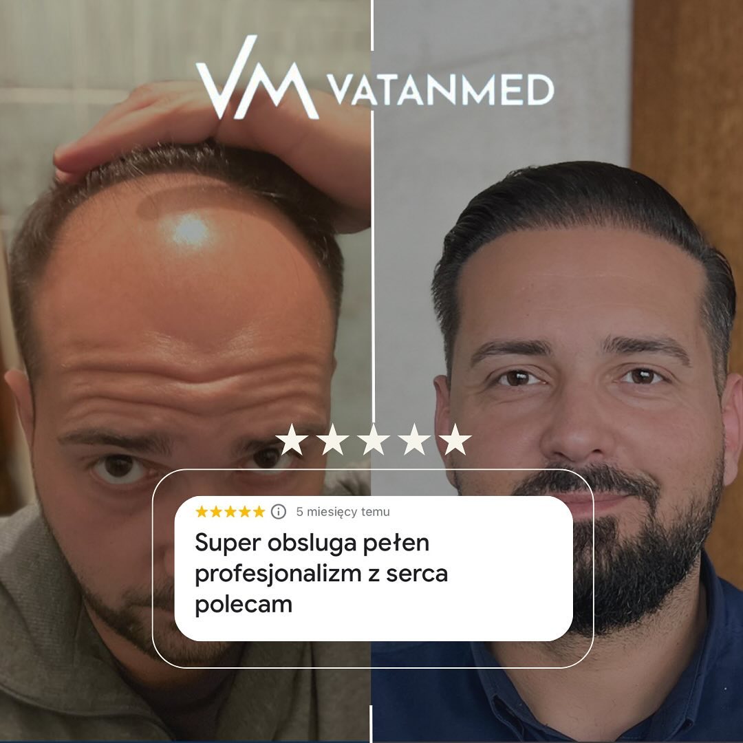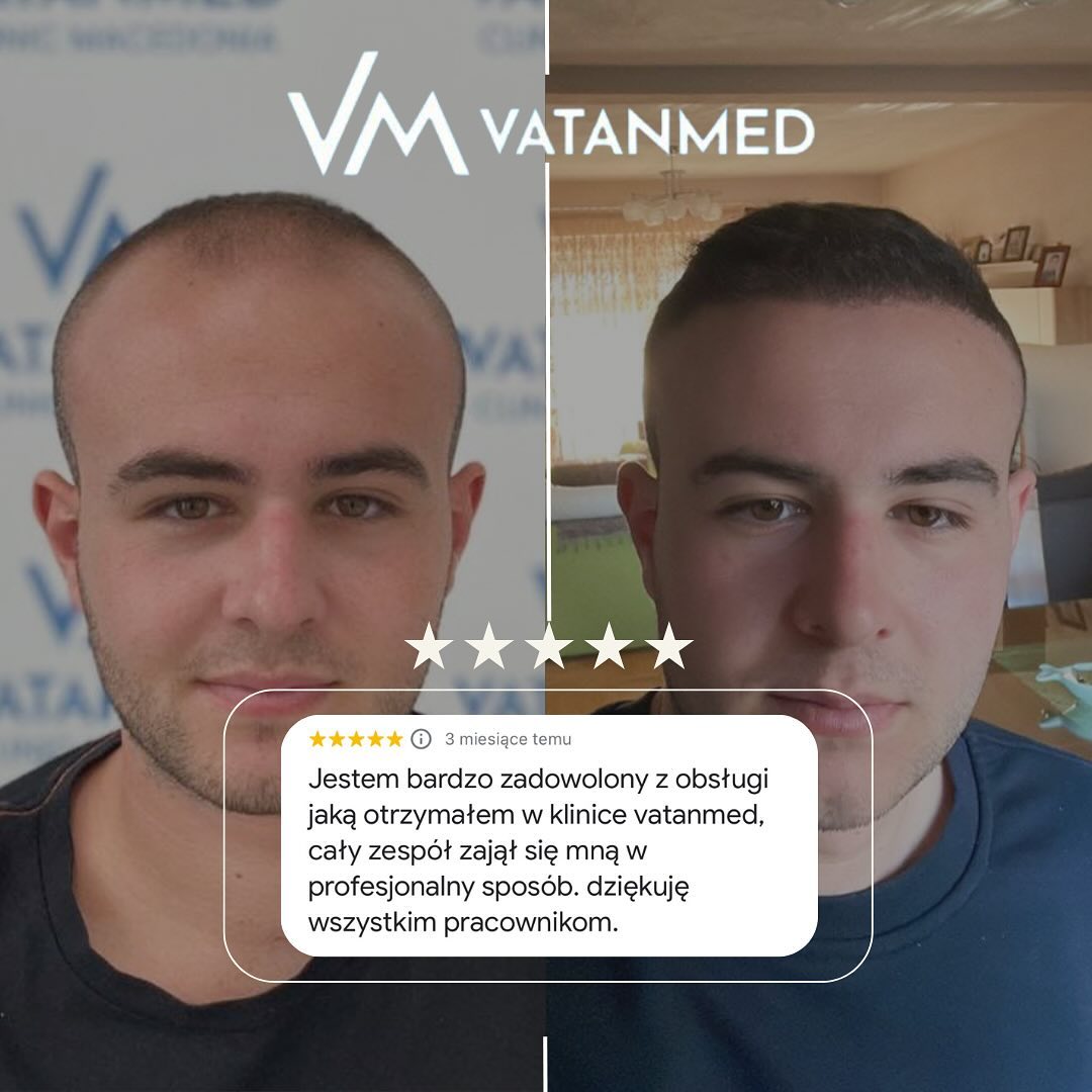Każda opinia, którą tutaj przeczytasz, została napisana przez pacjentów, którzy wybrali Vatanmed Clinic w Polsce na swój przeszczep włosów. Od pierwszej konsultacji aż po ostateczny efekt — ich autentyczne doświadczenia teraz pomagają i inspirują innych, tak jak Ciebie.