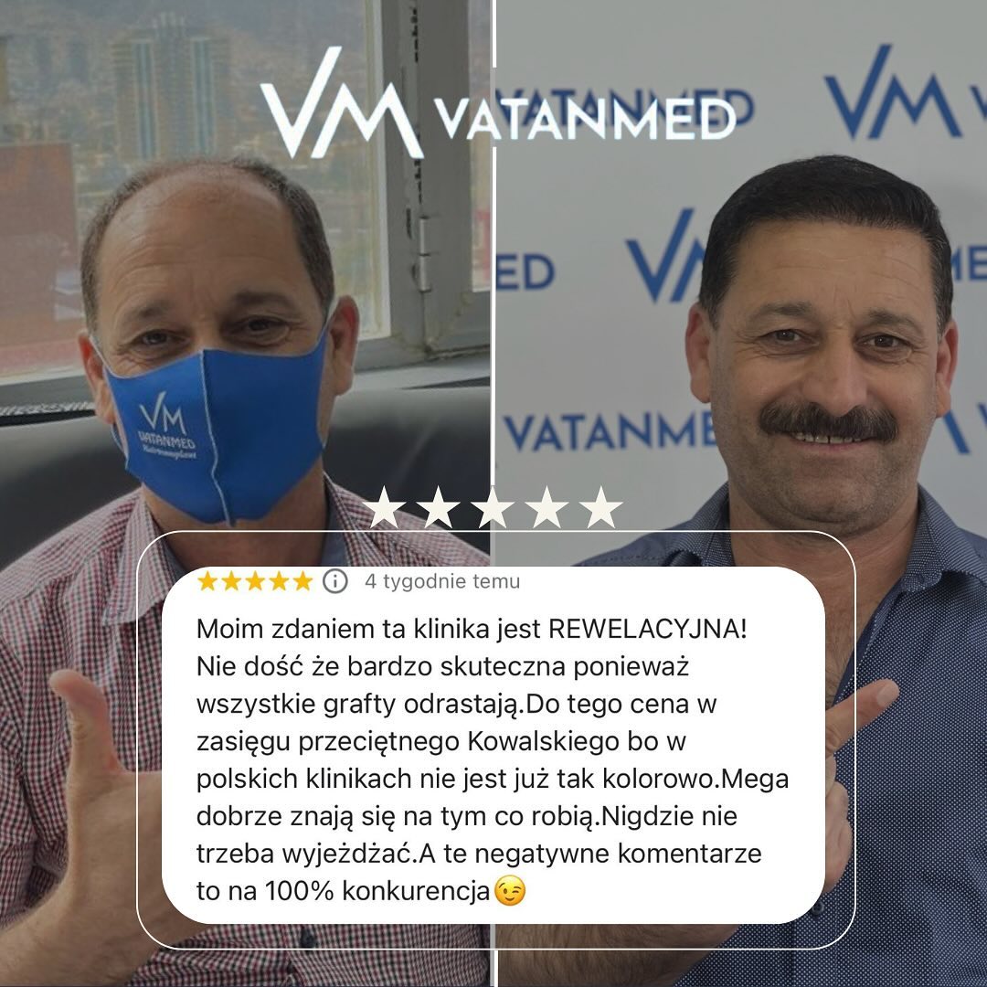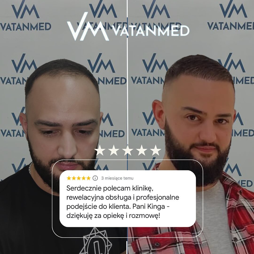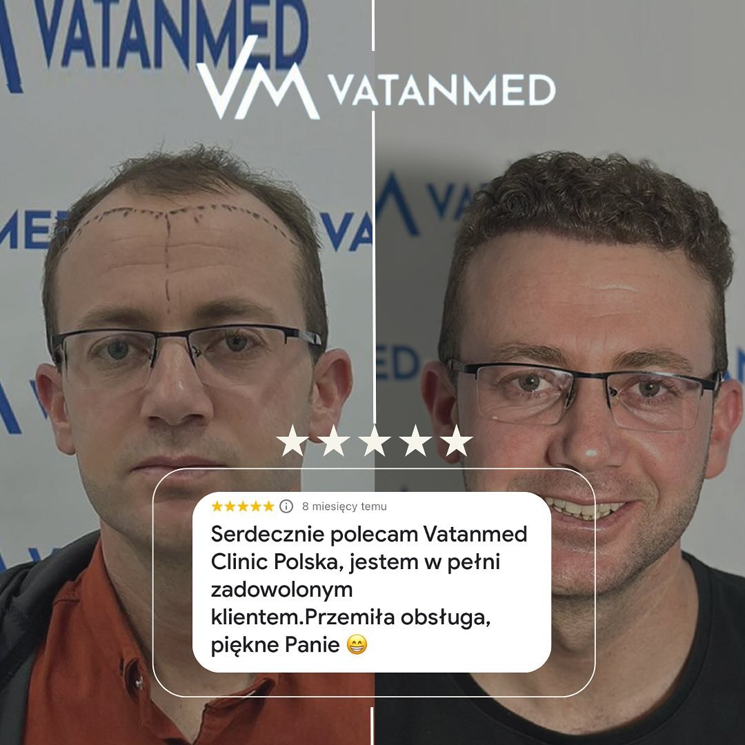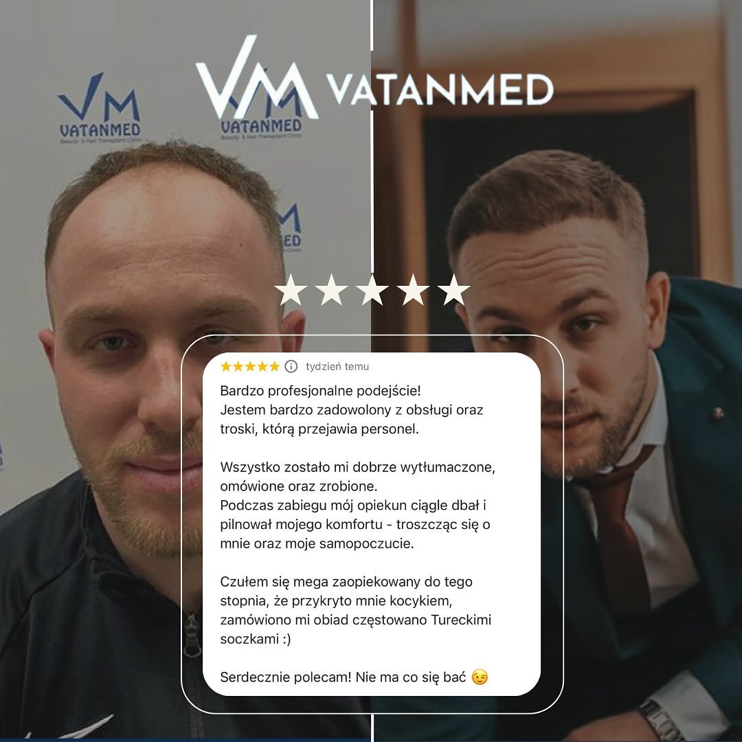 Miałem PRZYJEMNOŚĆ wykonać przeszczep włosów w klinice Vatanmed Warszawa, z czystym sumieniem mogę powiedzieć, że tak dobrej obsługi jeszcze nie doświadczyłem. Od samego początku przechodząc przez proces konsultacji, zabieg oraz opiekę w czasie rekonwalescencji wszystko na najwyższym poziomie. Konsultacja bardzo fachowa, lekarze bardzo kompetentni i z największą starannością wykonali zabieg a do tego są bardzo życzliwi i empatyczni ;) Cały zespół bardzo entuzjastycznie nastawiony, poprostu można poczuć rodzinną atmosferę. Jestem BARDZO zadowolony i napewno będę polecał każdemu kto szuka kliniki która wykona przeczep na najwyższym poziomie, jeszcze raz dziękuję!!